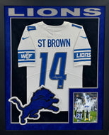 Amon-Ra St. Brown Signed Autographed Lions Nike Authentic White Jersey Custom Framed Fanatics COA