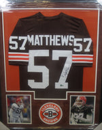 Cleveland Browns Clay Matthews Hand Signed Autographed Custom Brown Jersey Framed & Suede Matted with XL 3D Logo & Team Name Cutout with TSE COA