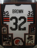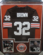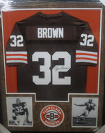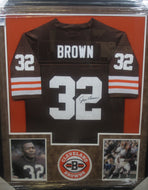 Cleveland Browns Jim Brown Hand Signed Autographed Custom Brown Jersey Framed & Suede Matted with XL 3D Logo & Team Name Cutout with JSA COA