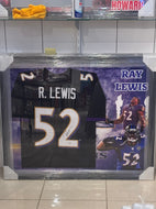 Baltimore Ravens Ray Lewis Hand Signed Autographed Custom Black Jersey Framed with Large Photo Print Background Includes Beckett COA