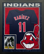 Cleveland Guardians Jose Ramirez Hand Signed Autographed Custom Navy Jersey Framed & Suede Matted with XL 3D Logo & Team Name Cutout JSA COA