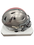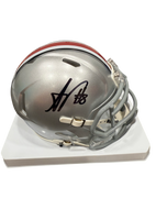 The Ohio State University Buckeyes Jeremiah Smith Hand Signed Autographed Silver Mini Helmet Signed in Black includes COA