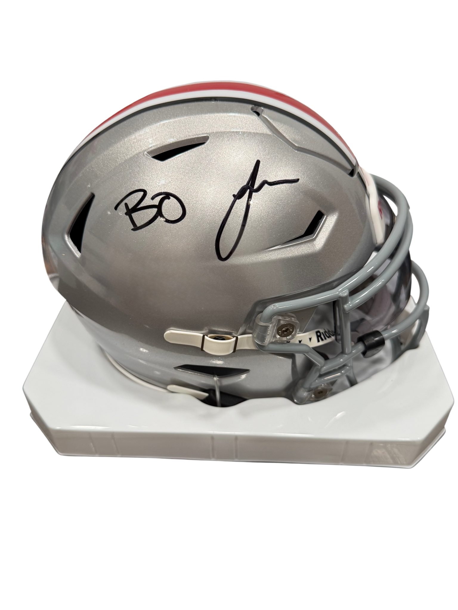 This Ohio State Buckeyes Mid Size Helmet was signed by Bo Jackson with a huge bold signature at our autograph signing event that was held at Belden Village Mall on 10/25/2025. It was witnessed by Prime Time and includes a tamper proof hologram that can be looked up on their website to verify authenticity of the autograph.
