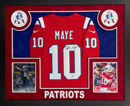Drake Maye Signed Autographed New England Patriots Jersey Custom Framed Fanatics COA