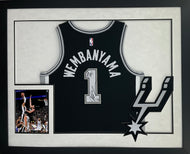 San Antonio Spurs Victor "Wemby" Wembanyama Hand Signed Autographed Authentic Black Jersey Framed & Double Suede Matted with XL 3D Logo & Cutout FANATICS Authentic COA