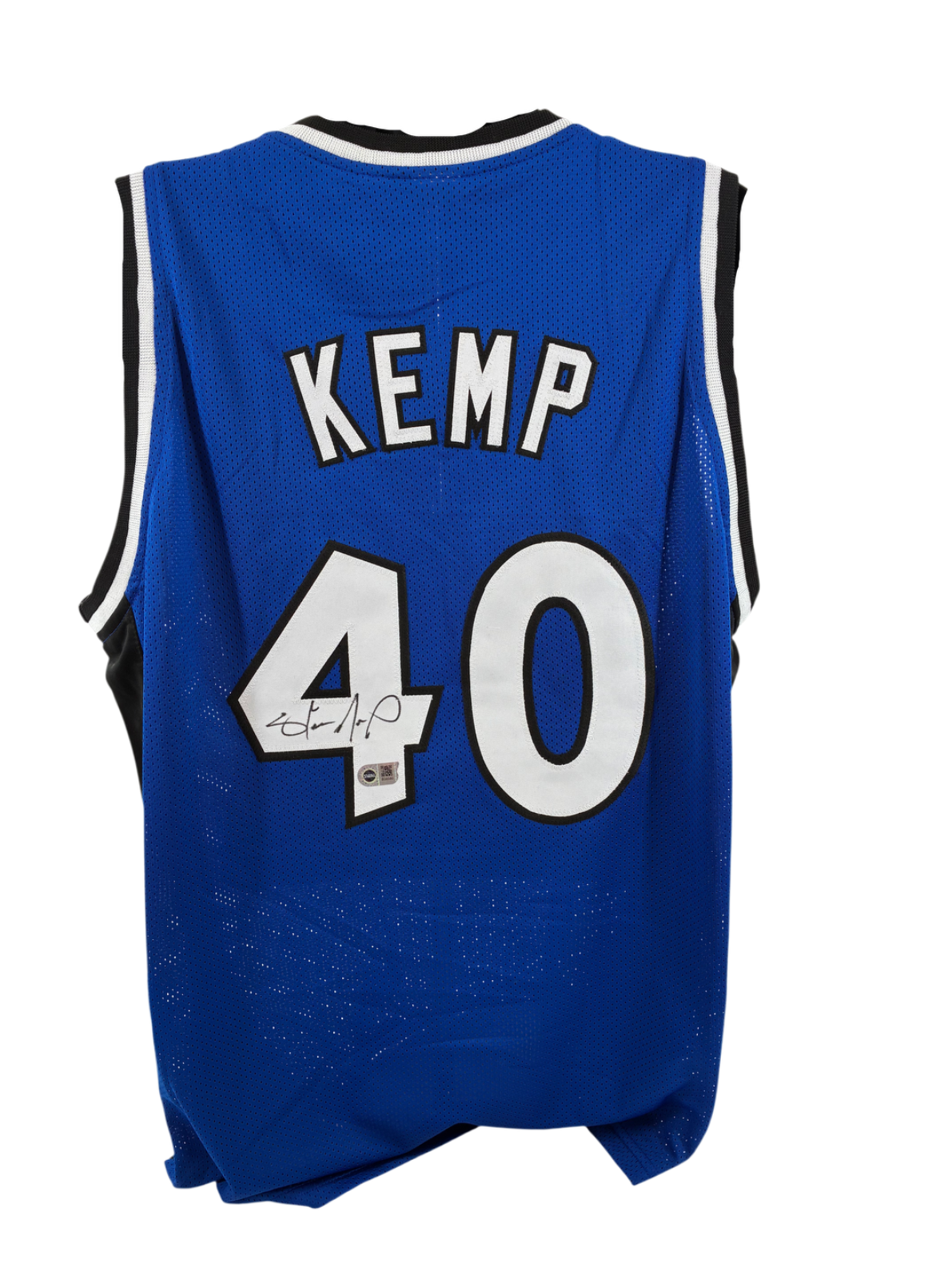 The product is a custom Orlando Magic jersey signed by basketball player Shawn Kemp. The autograph is authenticated by SWAU, ensuring its authenticity. This unique item combines the excitement of basketball with the collectibility of an original autograph, making it a desirable piece for fans and collectors alike.