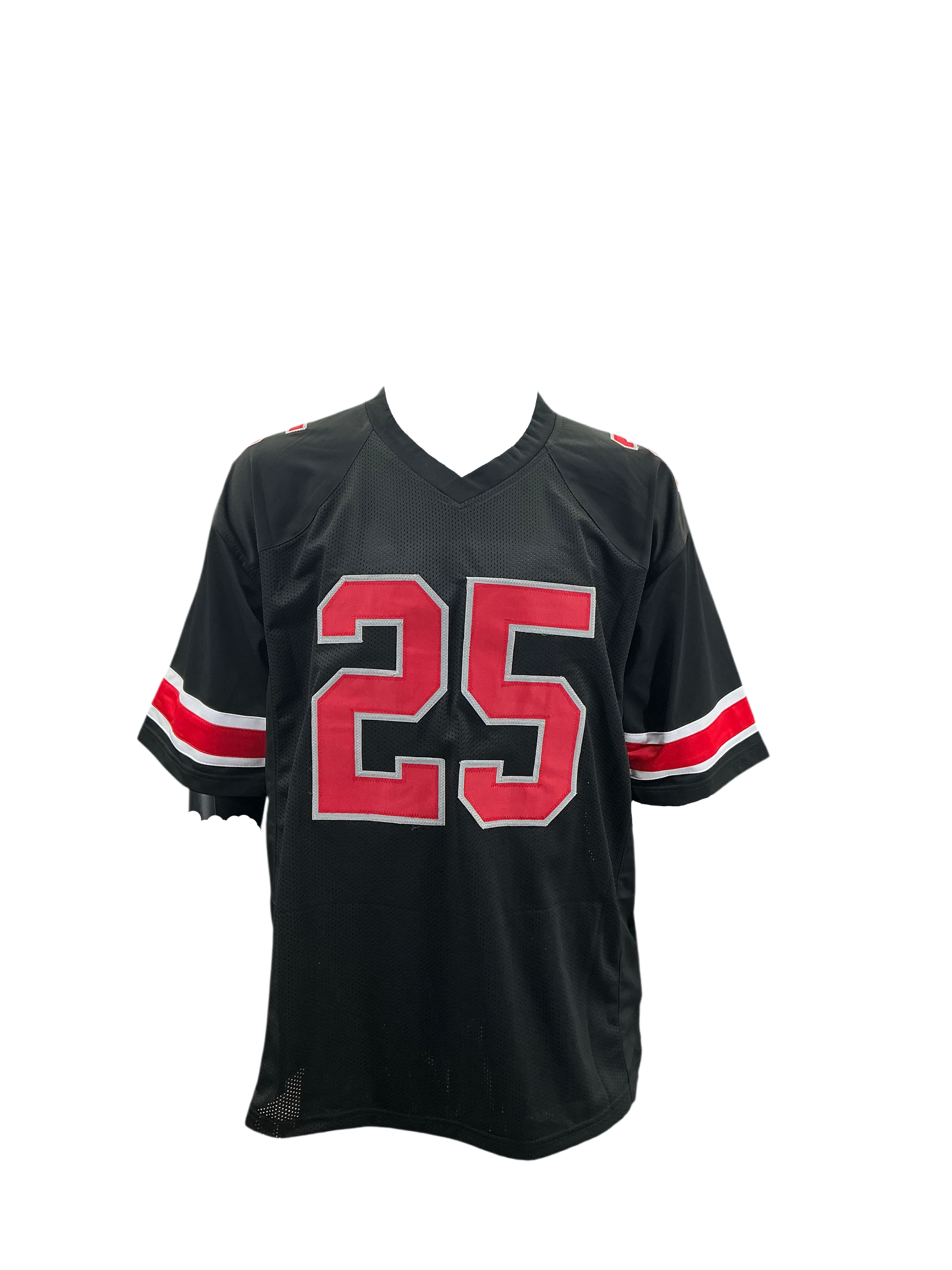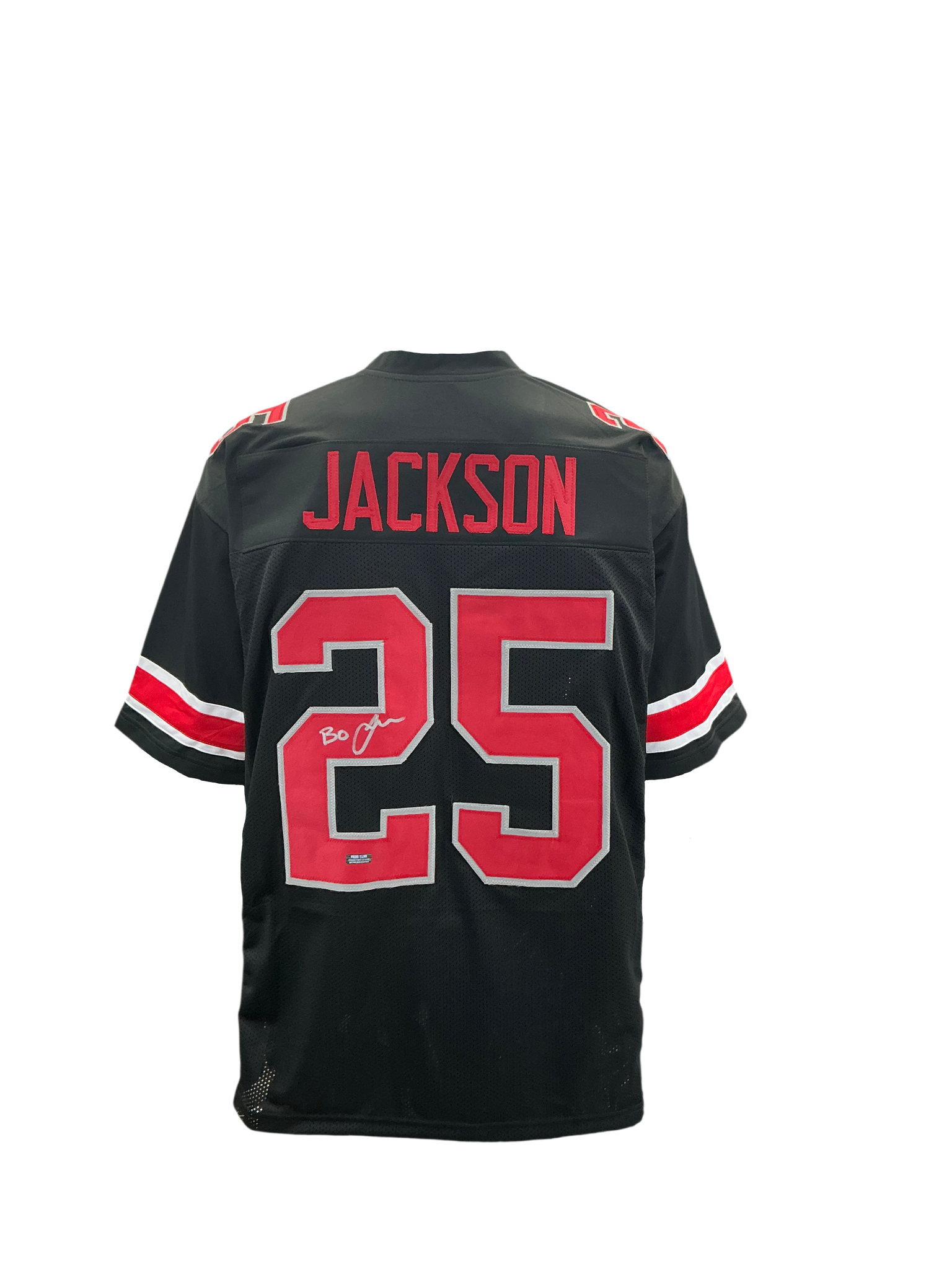 This Ohio State Buckeyes Custom Black Jersey was signed by Bo Jackson with a huge bold signature at our autograph signing event that was held at Belden Village Mall on 10/25/2025. It was witnessed by Prime Time and includes a tamper proof hologram that can be looked up on their website to verify authenticity of the autograph.