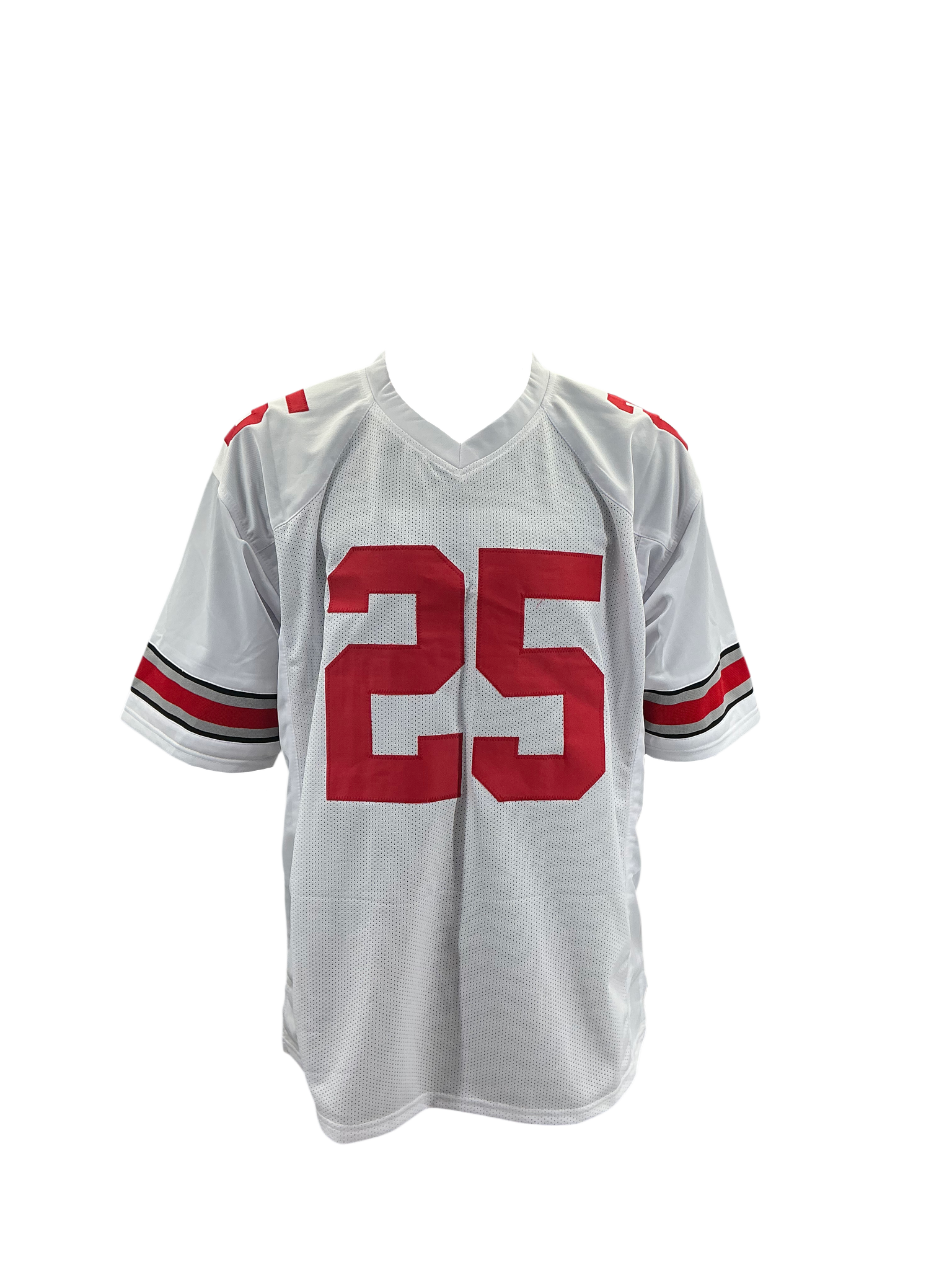 This Ohio State Buckeyes Custom White Jersey was signed by Bo Jackson with a huge bold signature at our autograph signing event that was held at Belden Village Mall on 10/25/2025. It was witnessed by Prime Time and includes a tamper proof hologram that can be looked up on their website to verify authenticity of the autograph.