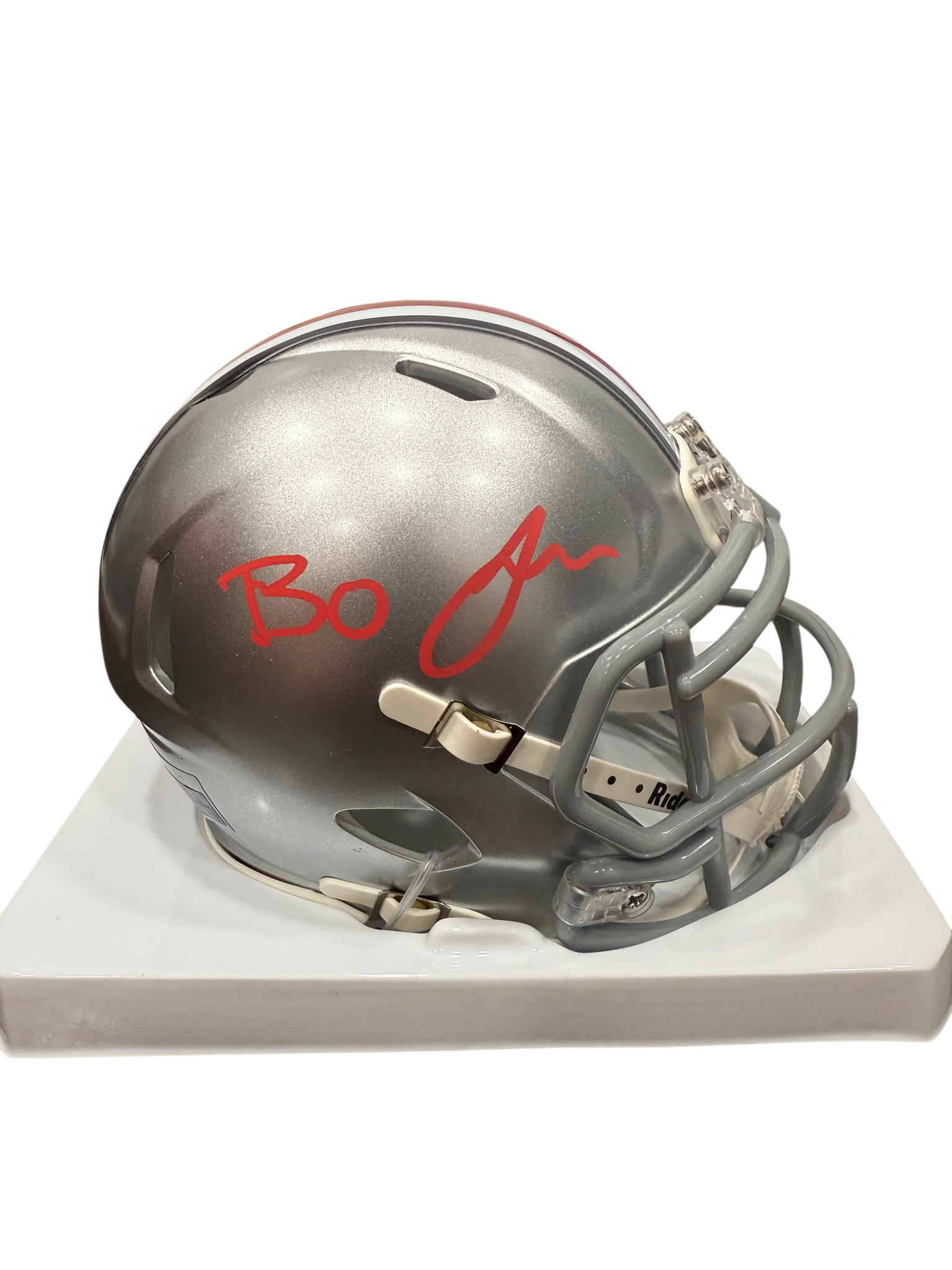 This Ohio State Buckeyes Mini Helmet was signed by Bo Jackson with a huge bold signature at our autograph signing event that was held at Belden Village Mall on 10/25/2025. It was witnessed by Prime Time and includes a tamper proof hologram that can be looked up on their website to verify authenticity of the autograph.