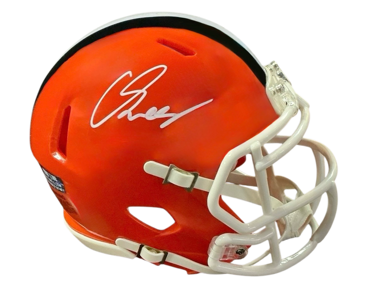 Carson Schwesinger Signed Autographed Cleveland Browns Current Style Orange Mini Helmet Signed in White includes COA