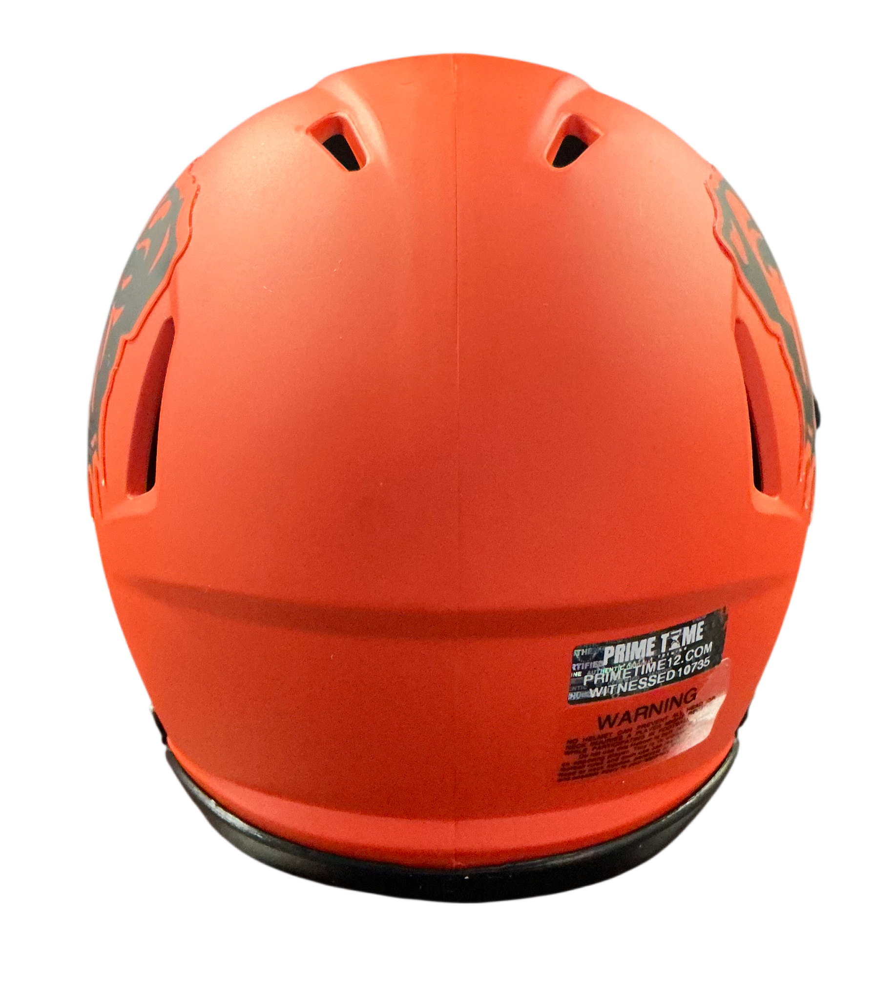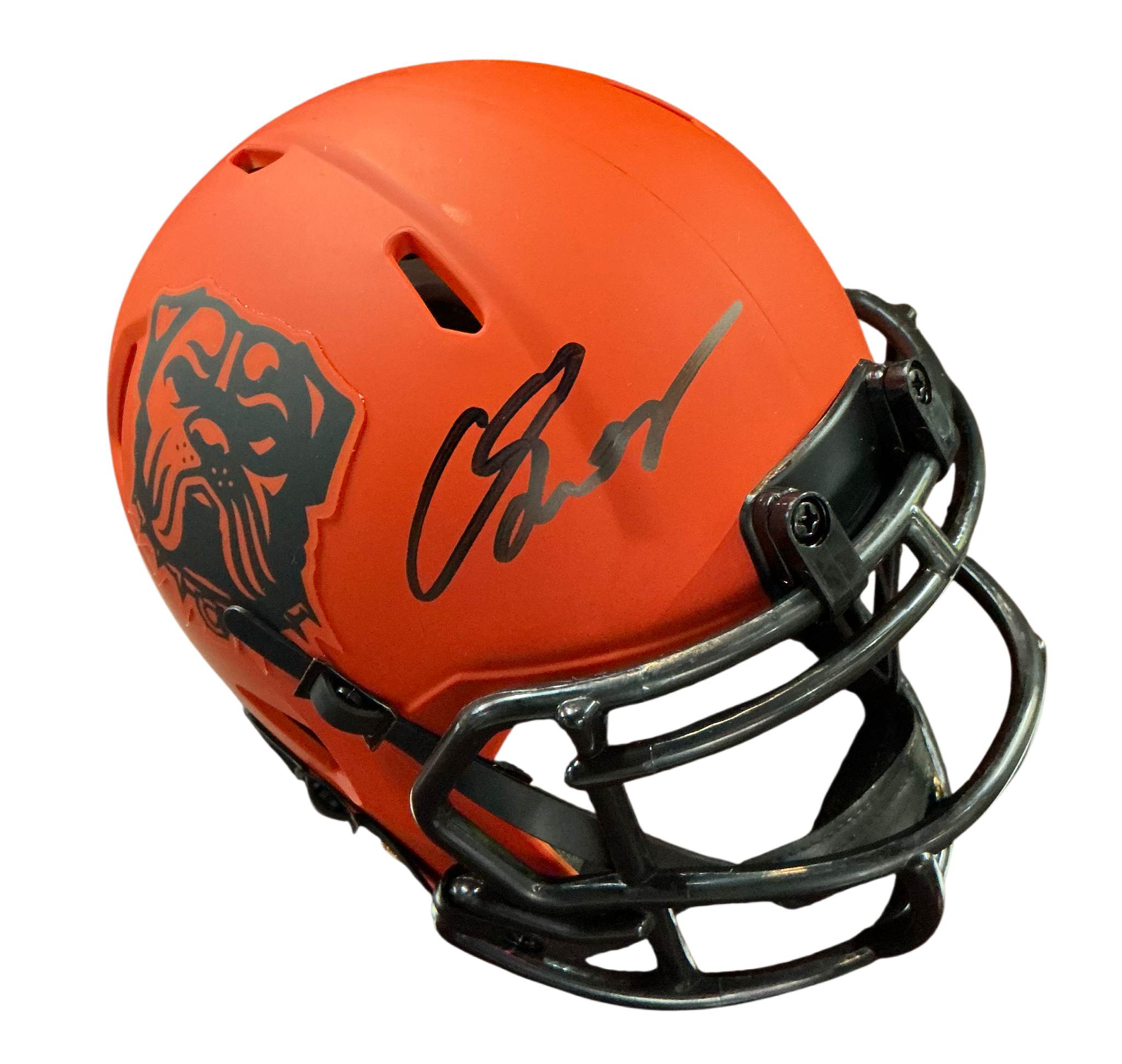 This Cleveland Browns Mini Helmet was signed by Carson Schwesinger with a huge bold signature at our autograph signing event that was held at Great Northern Mall on 9/23/2025. It was witnessed by Prime Time Witness authentication and includes a tamper proof hologram that can be looked up on our website to verify authenticity of the autograph.