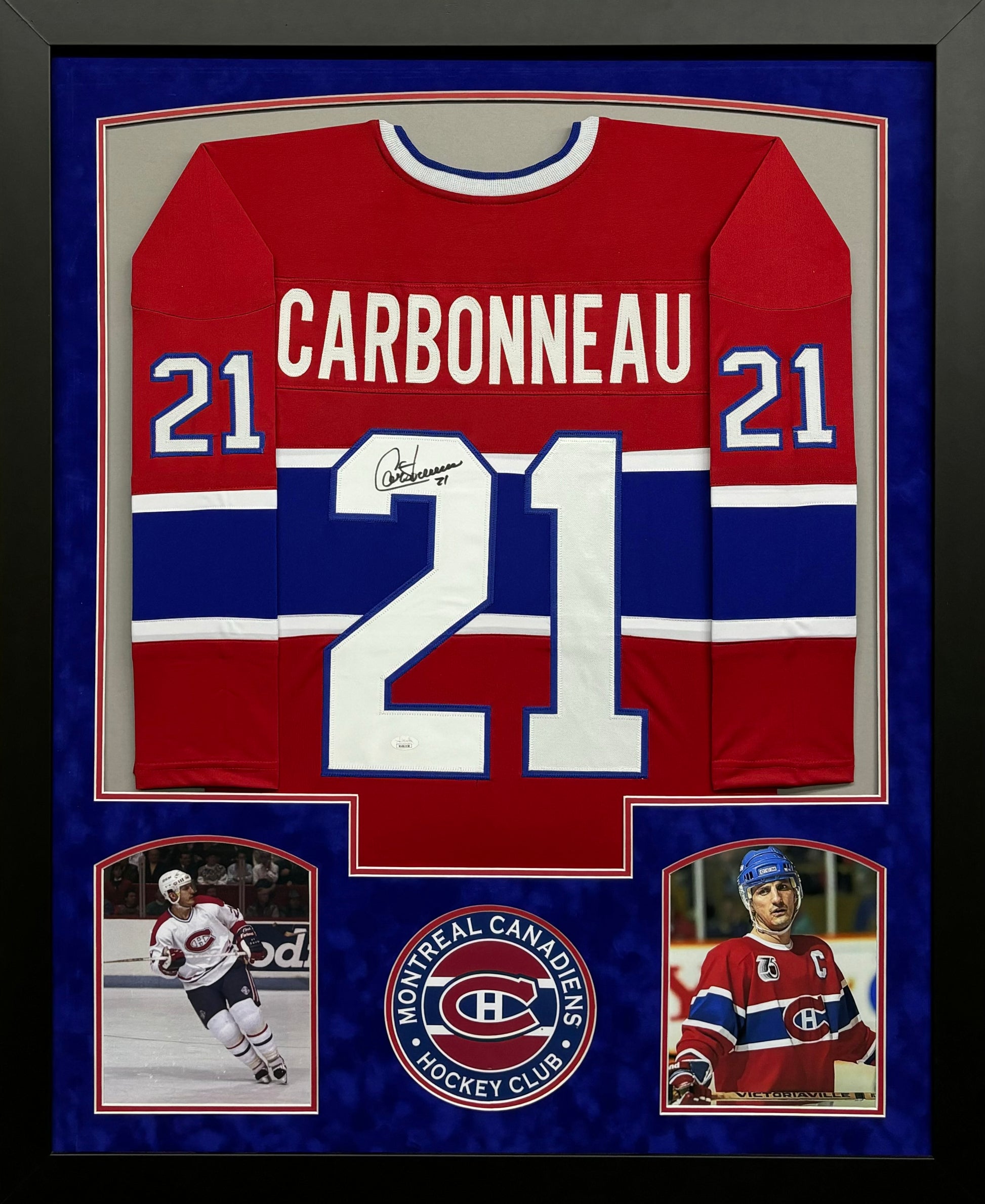This item is a Vertical 2 Picture Framed, Suede Matted, & Hand Signed Autographed Custom Jersey.