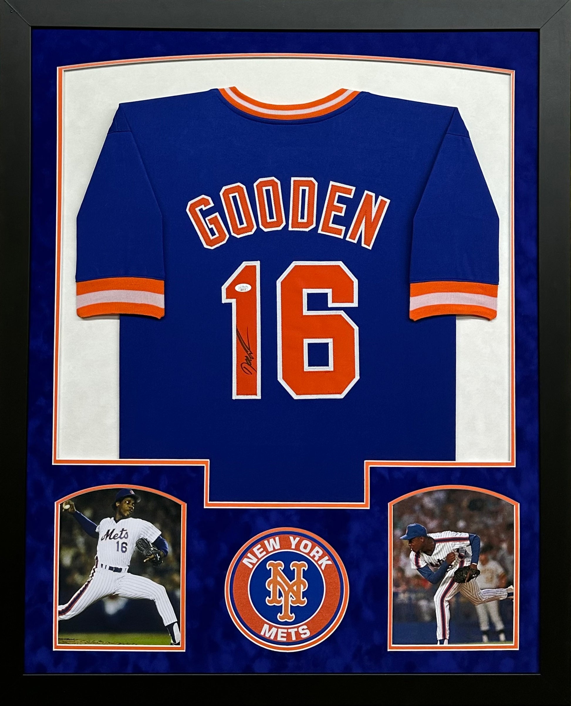 New York Mets Dwight Gooden Hand Signed Autographed Custom Blue Jersey Framed & Suede Matted with JSA COA
