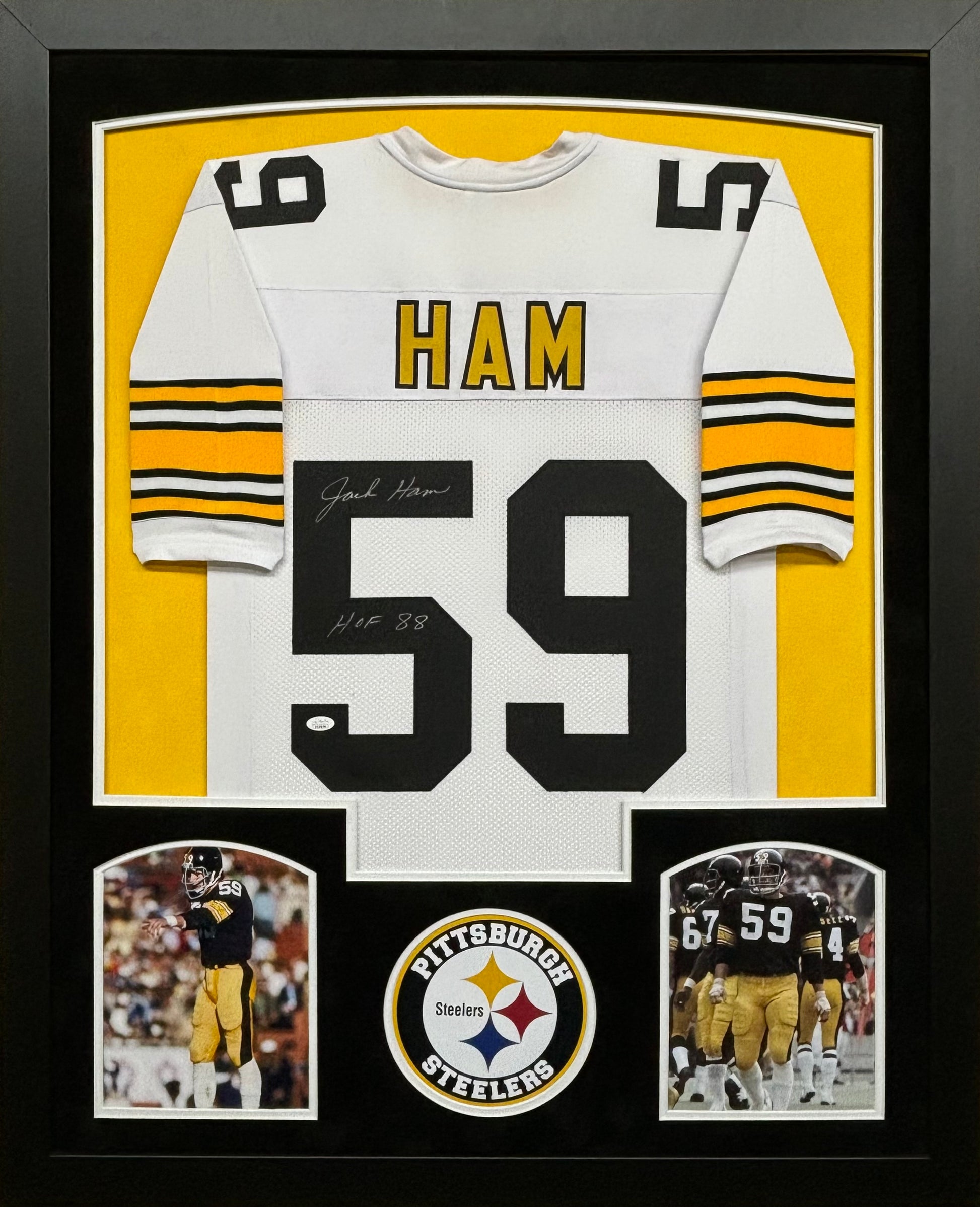 Pittsburgh Steelers Jack Ham Hand Signed Autographed Custom White Jersey Framed & Double Suede Matted with JSA COA