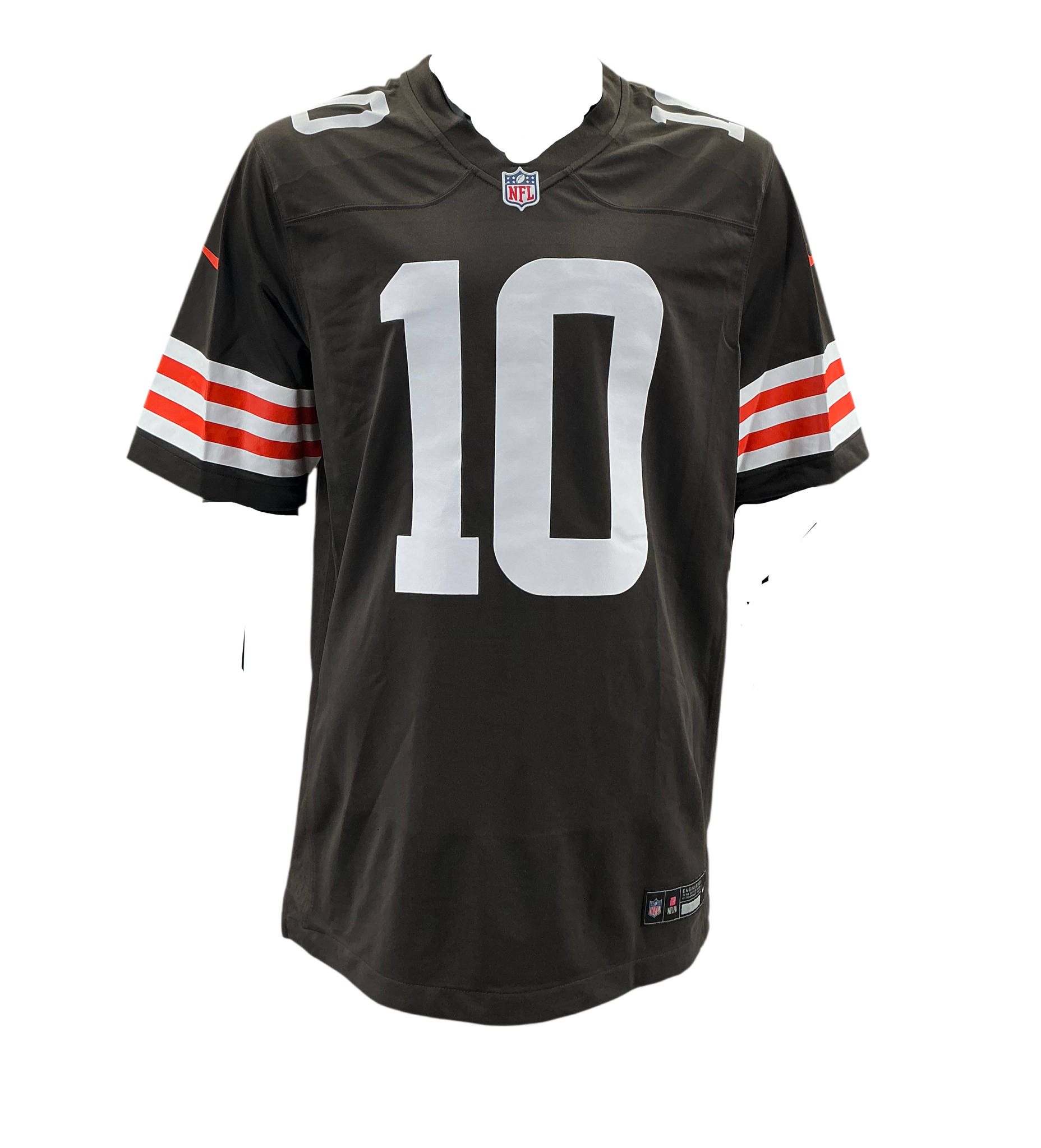 This Cleveland Browns Authentic Nike Brown Jersey was signed by Quinshon Judkins with a huge bold signature at our autograph signing event that was held at Great Northern Mall on 10/15/2025. It was witnessed by Swau and includes a tamper proof hologram that can be looked up on their website to verify authenticity of the autograph.